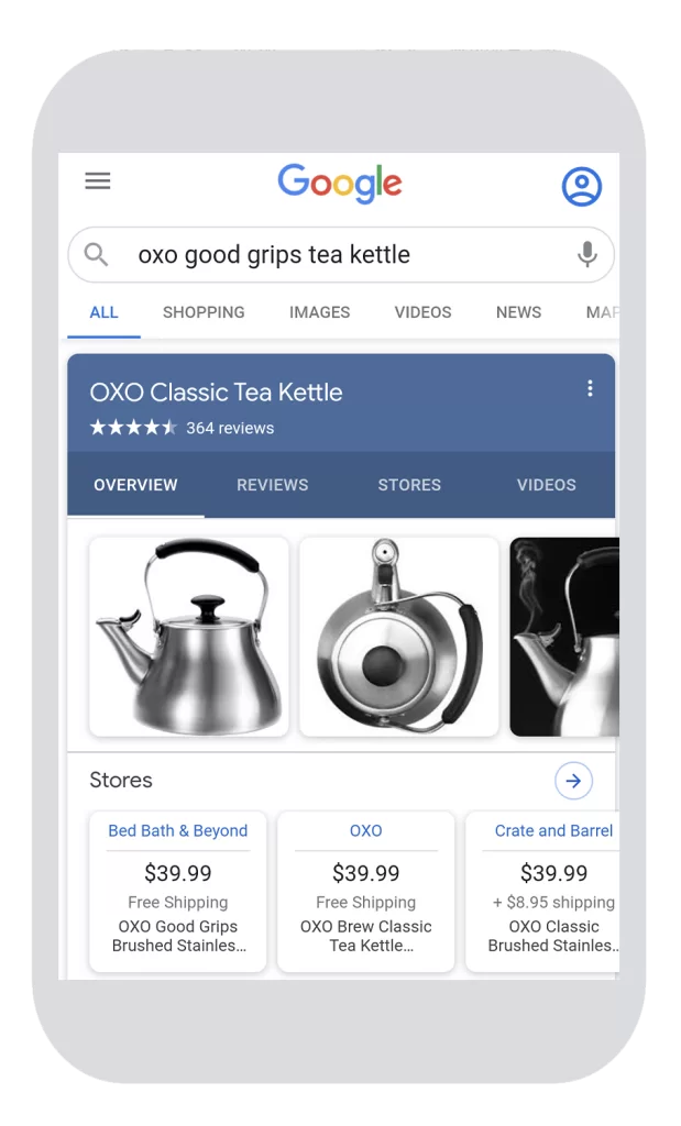 This is how the new product panel appears in Google mobile results:
